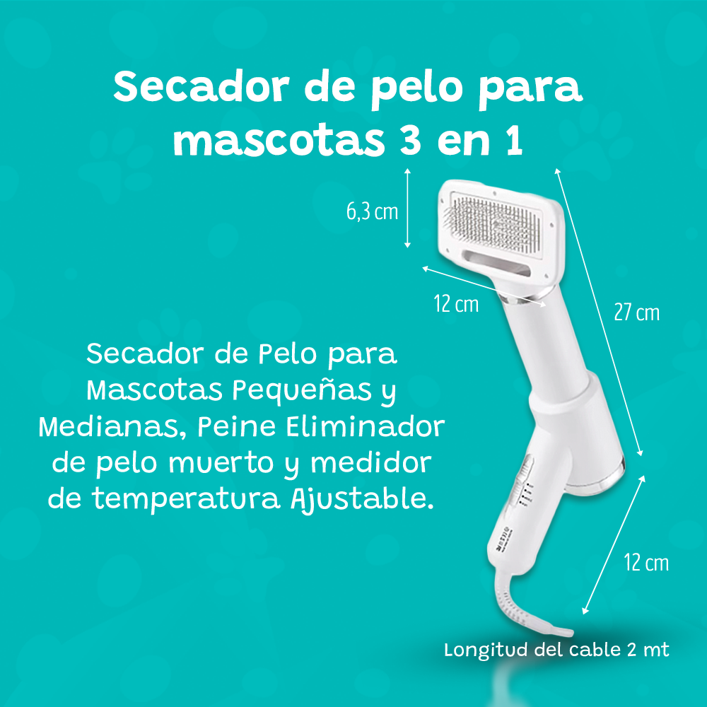 El secador para mascotas con cabezal rotativo de 360° y cepillo reemplazable es una herramienta esencial para el cuidado de tu mascota. Está equipado con configuraciones de calor ajustables y protección contra sobrecalentamiento, ofrece un secado eficiente y seguro. Su diseño innovador permite un secado uniforme y un acabado profesional, mientras que el cabezal rotativo de 360° y el cepillo intercambiable proporcionan versatilidad y facilidad de uso. Cuenta con 3 ajustes de temperatura, y contiene una protección de sobrecalentamiento esencial para mantener a nuestras mascotas con un cabello saludable y libres de sentir el calor fuerte en su piel. Tambien cuenta con un sistema removedor de cabello para eliminar el pelo muerto y evitar la excesiva caida de pelo en el hogar.